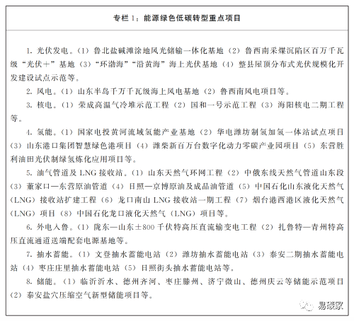 1.大力发展新能源。加快实施新能源倍增行动,统筹推动太阳能、风能、核能等开发利用,完成可再生能源电力消纳责任权重。加快发展光伏发电。坚持集散并举,开展整县屋顶分布式光伏规模化开发建设试点示范,打造鲁北盐碱滩涂地风光储输一体化基地、鲁西南采煤沉陷区百万千瓦级“光伏+”基地,加快探索海上光伏基地建设。大力推进风电开发。以渤中、半岛南、半岛北三大片区为重点,打造千万千瓦级海上风电基地,推动海上风电与海洋牧场融合发展试点示范,有序推进陆上风电开发。积极安全有序发展核电。围绕打造胶东半岛千万千瓦级核电基地,全力推进海阳、荣成等核电厂址开发。加快推进核能供热、海水淡化等综合利用。探索推动核能小堆供热技术研究和示范应用。培育壮大氢能产业。加强工业副产氢纯化技术研发和应用,积极推进可再生能源制氢和低谷电力制氢试点,培育风光+氢储能一体化应用模式。实施“氢进万家”科技示范工程,促进完善制氢、储(运)氢、输氢、加氢、用氢全产业链氢能体系。因地制宜发展其他清洁能源。统筹推进生物质能、地热能、海洋能等清洁能源多元化发展。到2030年,光伏发电、风电、核电、生物质发电装机分别达到9500万千瓦、4500万千瓦、1000万千瓦和500万千瓦。(责任单位:省能源局、省发展改革委、省自然资源厅、省住房城乡建设厅、省工业和信息化厅、省科技厅、省水利厅、省农业农村厅、省海洋局、省生态环境厅)