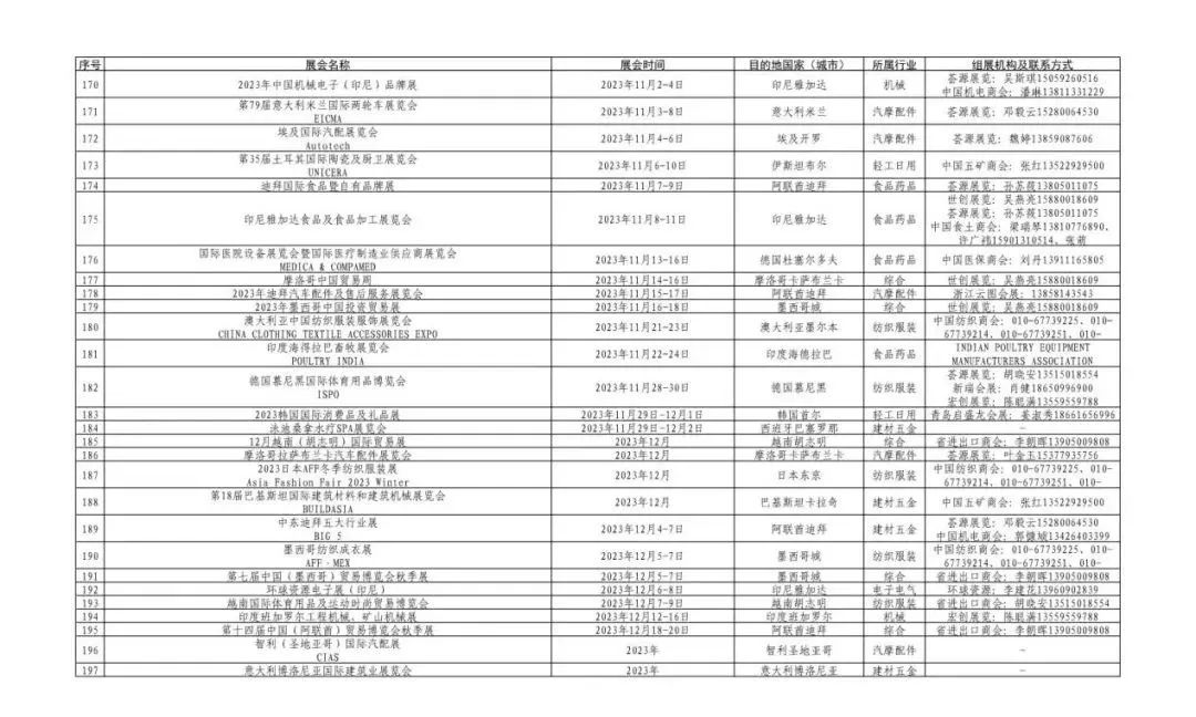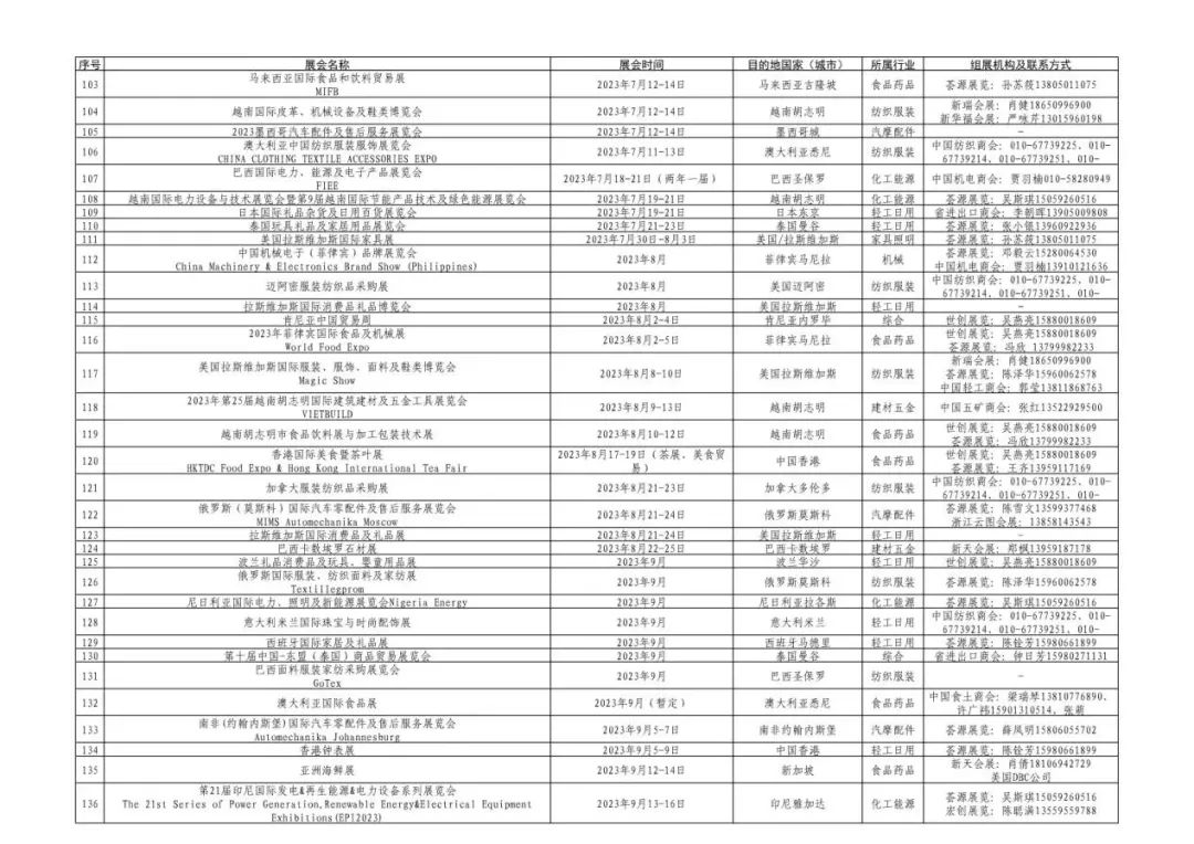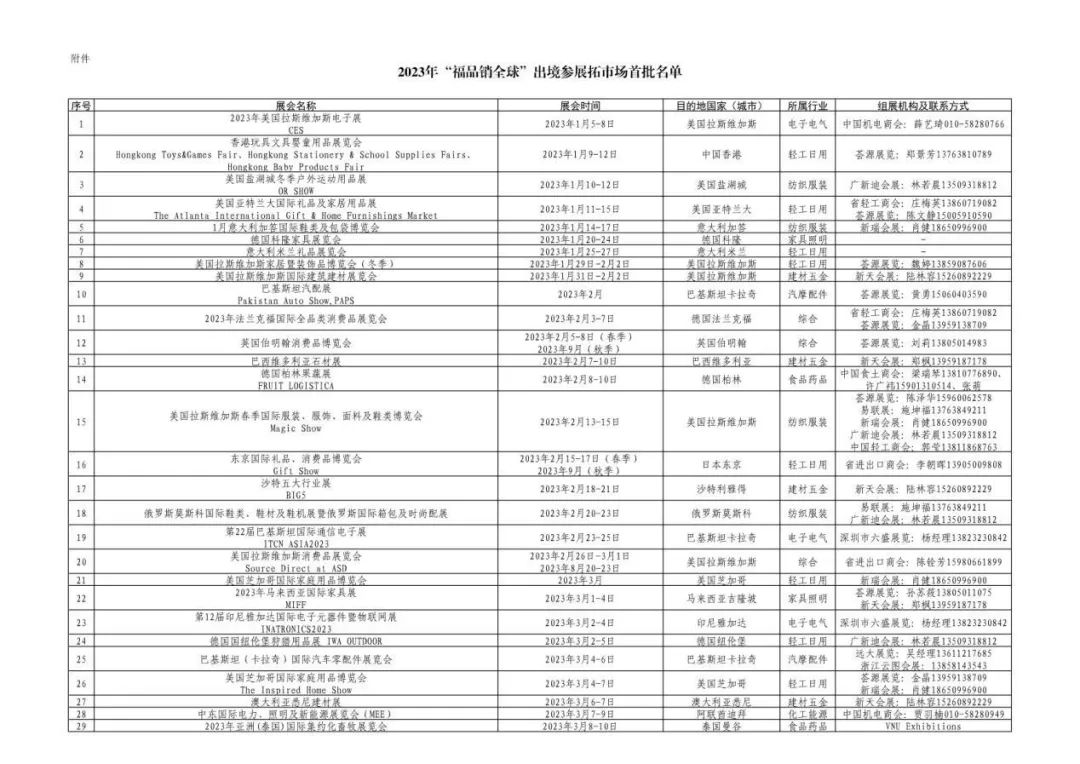 日前,福建省商务厅发布福建省2023年“福品销全球”出境参展拓市场首批名单(共计197个境外展会),意向参展企业已超3000家次,中国银行福建省分行、厦门航空、东方航空等为福建省出境参展的外贸企业提供系列综合保障服务。
