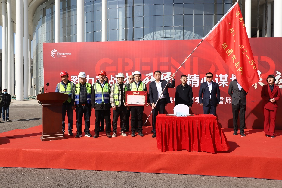 济南起步区管委会、绿地集团山东区域管理总部、中建八局二公司、江苏港宁、山东沃尔德相关负责人,以及会展中心项目部全体员工、会展运营公司、总包、分包、监理单位代表300余人参加大会。
