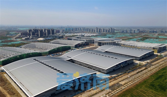 4月8日,高空俯瞰济南黄河国际会展中心,项目正在进行全力冲刺建设,为今年首展做准备。目前继会展中心项目首期北侧六个标准展馆和登录厅具备使用条件,近期N1展馆钢结构也已圆满封顶,标志着济南黄河国际会展中心首期剩余所有单体建筑全部进入装饰装修阶段。
