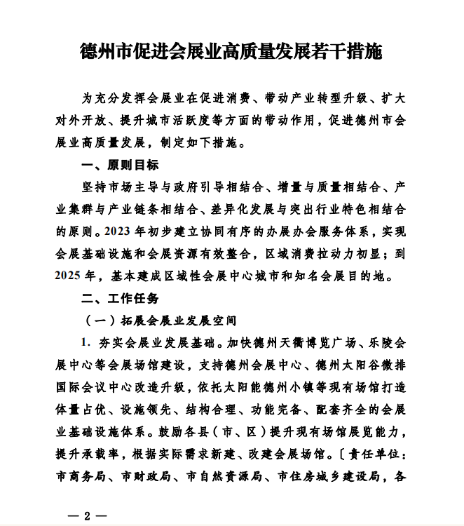 德州市出台政策、成立专班,促进会展业高质量发展