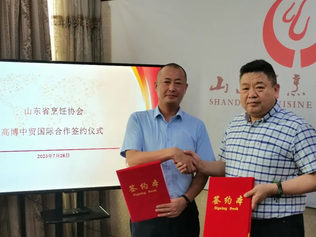 7月26日,中法合资高博中贸国际会展集团与山东省烹饪协会就联合主办ACE2023亚洲餐饮展览会(以下简称ACE2023亚餐展)及亚洲餐饮文化美食大会等事宜达成共识,并在山东省烹饪协会会议室举行了签约仪式。