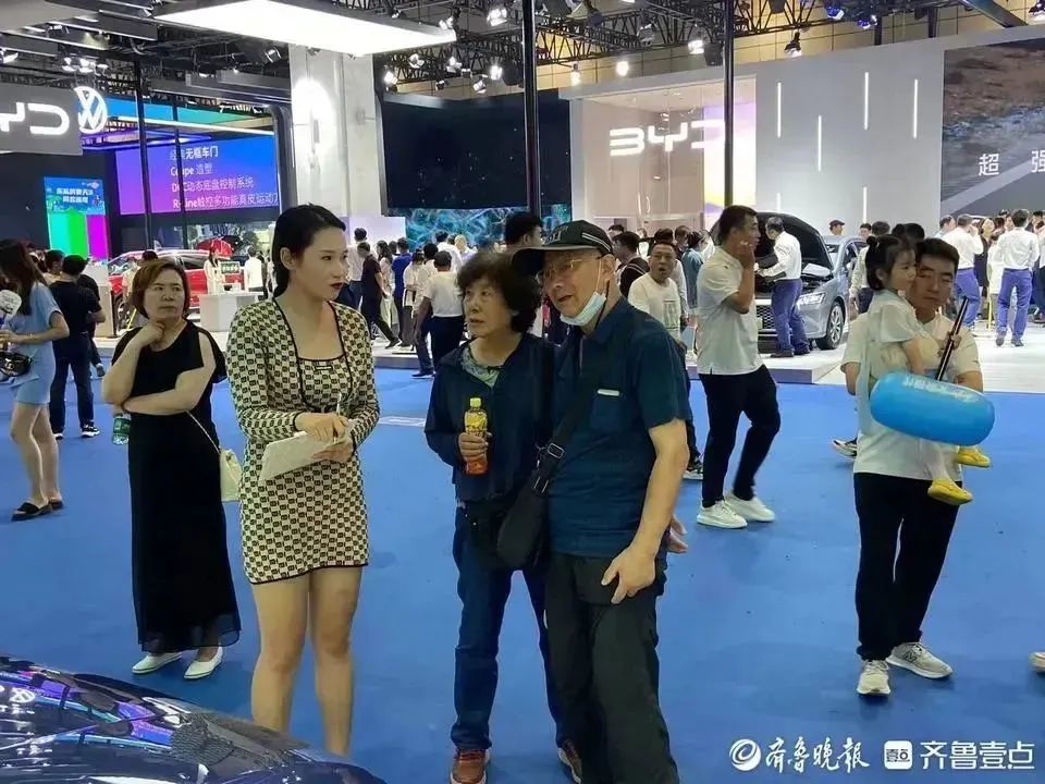 在车展上,也出现了很多老年消费者的身影,他们有的在和销售员交谈,有的在观看着汽车的外观和配置,还有的在拍照留念。