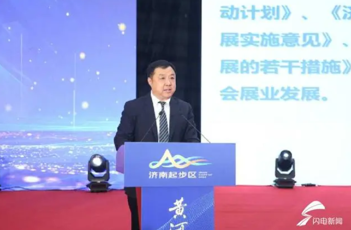 济南市商务局党组副书记、副局长王志刚进行济南黄河国际会展中心产业支持发布