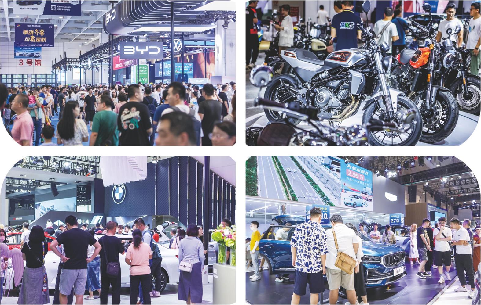 比亚迪、特斯拉、鸿蒙智行、理想、蔚来、腾势、小鹏、方程豹、哪吒、极氪、长安深蓝、阿维塔、江淮钇为、极星、零跑、奇瑞新能源、极狐、智己、岚图、东风风神、东风纳米、东风奕派等新能源品牌强势登陆;上汽大众、一汽-大众、长安、吉利、别克、广汽本田、东风本田、广汽丰田、一汽丰田、广汽传祺、哈弗、长城炮、魏牌、坦克、东风日产、广汽埃安、雪佛兰、领克、福特、起亚、一汽奔腾、江淮汽车、江淮乘用车、上汽荣威、北京现代、上汽MG、奇瑞汽车、北京汽车、神龙汽车、捷达等传统合资车企齐齐亮相。