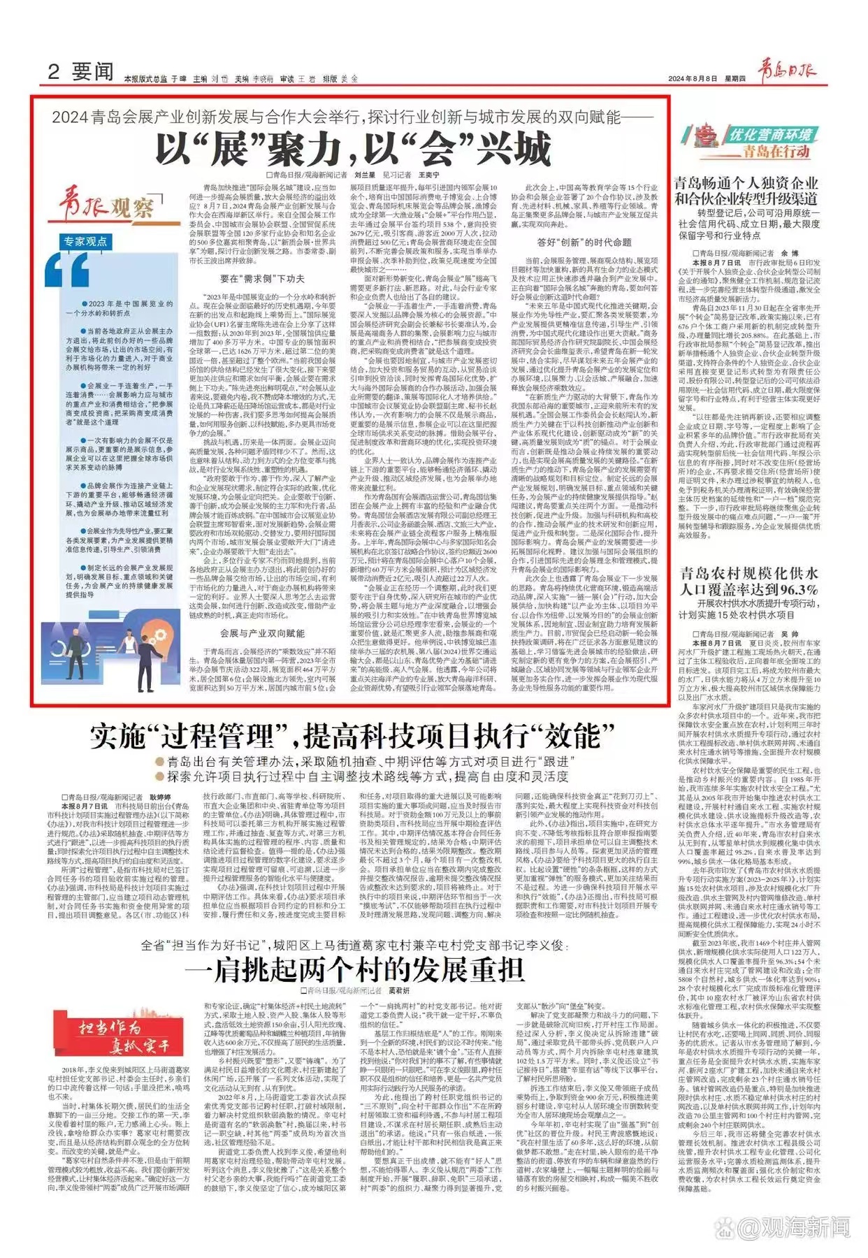 青岛加快推进“国际会展名城”建设,应当如何进一步提高会展质量,放大会展经济的溢出效应?8月7日,2024青岛会展产业创新发展与合作大会在西海岸新区举行。来自全国会展工作委员会、中国城市会展协会联盟、全国贸促系统会展联盟等全国120多家行业协会和知名企业的500多位嘉宾相聚青岛,以“新质会展·世界共享”为题,探讨行业创新发展之路。市委常委、副市长王波出席并致辞。