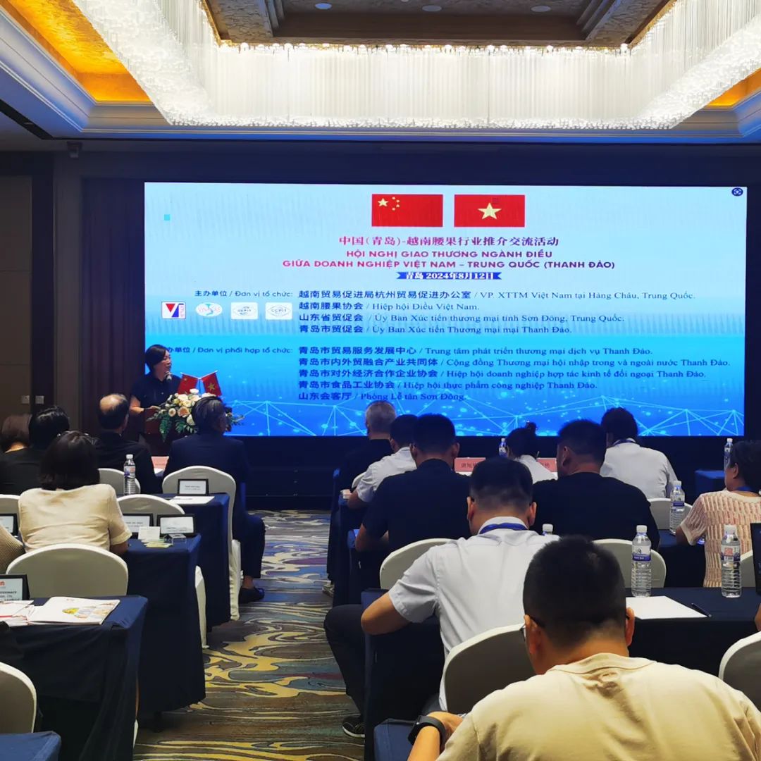 8月12日,应越南工贸部贸易促进局和越南腰果协会邀请,青岛贸促会和山东省贸促会共同举办“中国(青岛)— 越南腰果行业推介交流活动”。来自越南的14家腰果行业企业与30余家山东及青岛企业进行了“一对一”对接洽谈,在腰果进口及深加工方面达成多项合作意向。