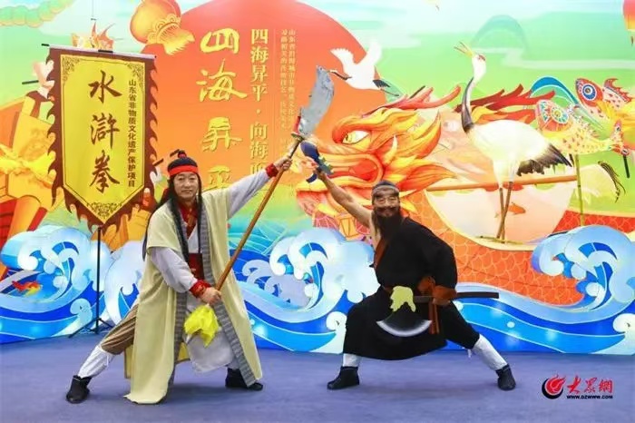 10月17日,第八届中国非物质文化遗产博览会在山东济南开幕,位于济南市舜耕国际会展中心。山东展区在二楼东区精彩亮相,其中郓城县非遗项目“水浒拳”以精彩的表演得到大众的青睐。