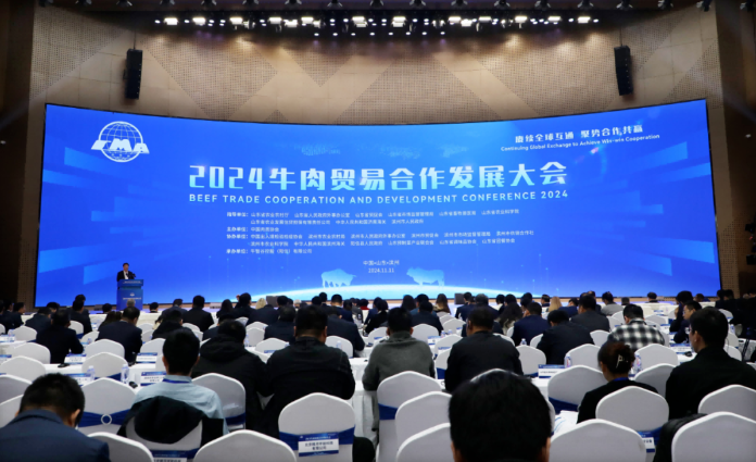 11月11日,2024牛肉贸易合作发展大会在我市阳信县举办。副省长陈平出席大会并讲话;第十三届全国政协常务委员兼副秘书长、农工党十六届中央专职副主席兼秘书长、中国出入境检验检疫协会首席专家曲凤宏,中国工程院院士、中国农业大学教授李德发,农业农村部原国家首席兽医师(官)、中国乡村发展协会执行副会长兼秘书长李金祥,摩尔多瓦驻华大使杜米特鲁·贝拉基什,埃塞俄比亚驻华大使馆副大使德瓦诺·卡迪尔,新西兰初级产业部副部长欧阳夏,国家市场监督管理总局食品生产监督管理司原司长马纯良,中国出入境检验检疫协会会长王新,世界肉类组织副主席、中国肉类协会会长陈伟,滨州市委书记宋永祥分别致辞;世界肉类组织主席胡安何塞视频致辞;国务院原参事、原国家质检局副局长、中国出入境检验检疫协会原会长葛志荣,中国出入境检验检疫协会专家、原副关长、一级巡视员冯学平,中国出入境检验检疫协会技术性贸易措施首席专家、国家市场监管总局国际合作司原副司长、一级巡视员韩建平,省政府副秘书长薛超文,省委农办主任、省农业农村厅党组书记、厅长,省乡村振兴局局长张红旗,省农业科学院党委书记梁金光,省农业发展信贷担保有限责任公司、省投融资担保集团党委书记、董事长张安民,市委副书记、市长李春田,市委副书记刘忠远出席。