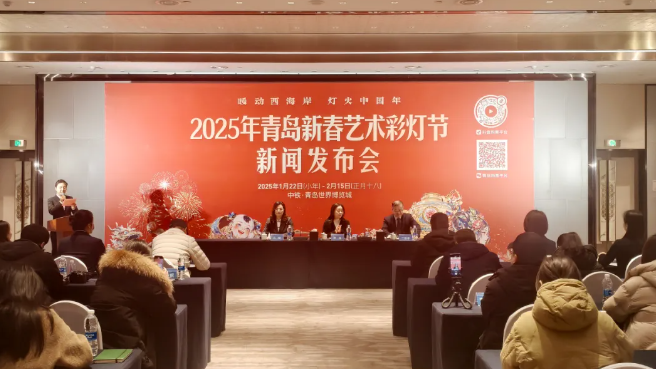2025年1月14日上午,2025年青岛新春艺术彩灯节新闻发布会在中铁·青岛世界博览城隆重召开,青岛西海岸新区会展业发展促进中心副主任丁新春、青岛西海岸新区文化和旅游局市场推广科科长乔婕、中铁会展有限公司副总经理徐丽出席了发布会。同时,还邀请了三十余家媒体记者现场参与此次发布会。