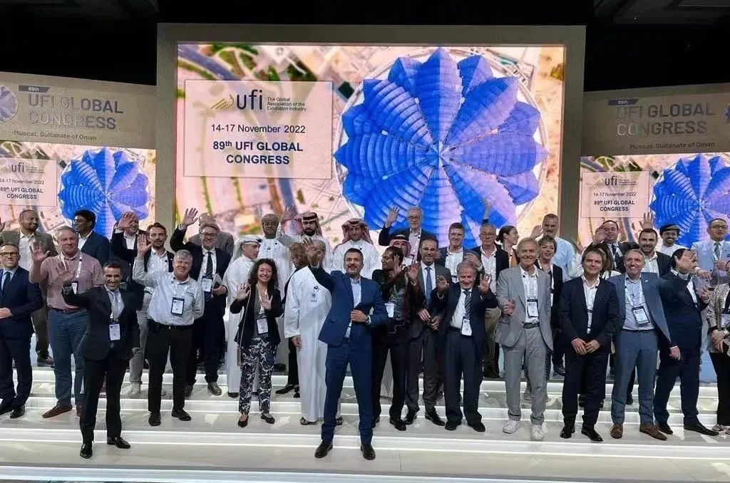 2022年11月14日,来自世界各地的UFI成员公司代表在马斯喀特(阿曼苏丹国)参加第89届UFI全球年会,回顾国际展览业协会UFI在2022年的工作,并探讨行业来年的发展。