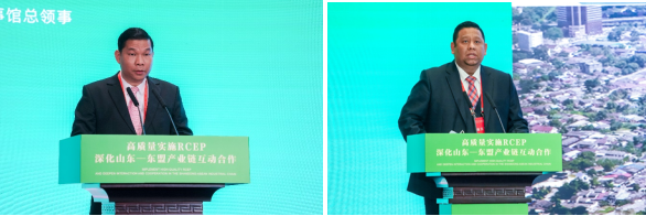 山东与东盟经贸往来不断密切,柬埔寨王国驻济南总领事馆山索峰总领事出席活动并致辞。泰王国驻青岛总领事馆王玉君总领事、马来西亚驻上海总领事馆投资处投资领事詹盛福先生分别对泰国和马来西亚的重点产业发展情况及对华合作需求做了推介。