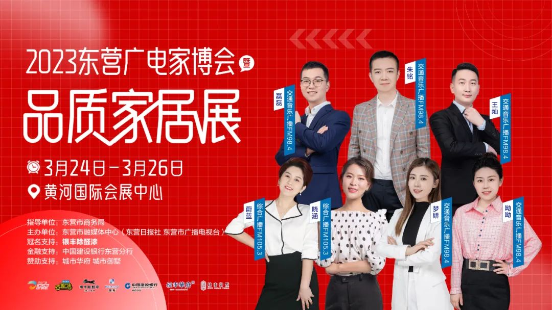 2023东营广电家博会暨品质家居展由东营市商务局指导、东营市融媒体中心主办。通过东营市融媒体中心旗下广播、电视、客户端、新媒体等资源联合展开高频次、强覆盖的宣传,广大市民朋友可以听得见家博会,看得见春天的精彩!