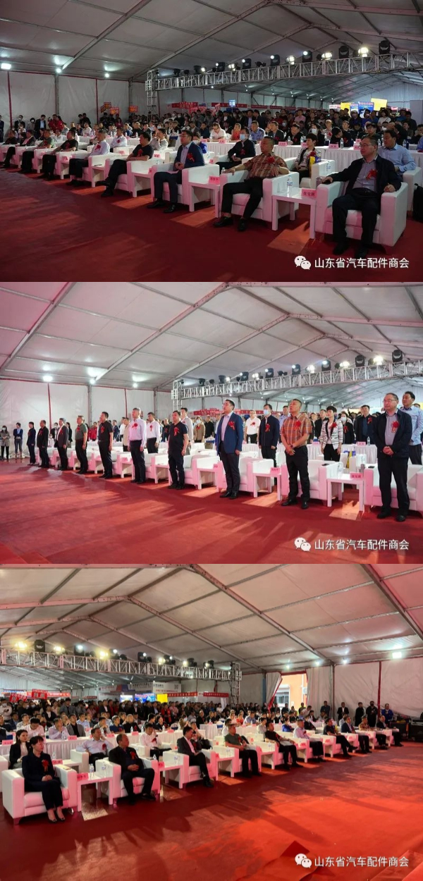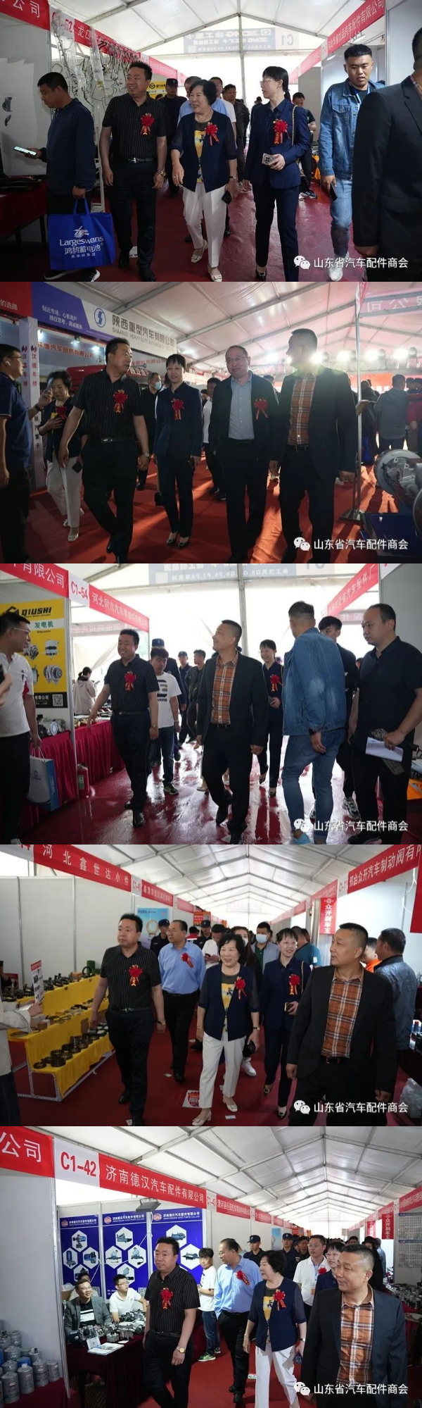 中国汽车工业配件销售公司总经理曹晨、山东省市场监管局消费者协会副秘书长梁峰、济南市商务局党组成员、副局长王志刚、济南市工商联党组成员、副主席刘延国、天桥区统战部副部长、区工商联党组书记梁军、天桥区民政局社会组织综合党委书记袁敏、济南市天桥区药山街道办事处党工委书记刘志华、展会主办方山东省汽车配件商会会长倪付庆、泉利528国际重配展承办方、山东泉利置业董事长周利平、肥城市人民政府副市长步文上台剪彩。