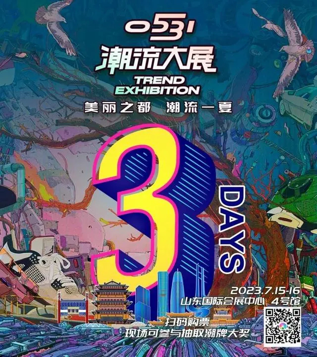 倒计时仅剩3天,来一起参加0531潮流大展,抽大奖吧!欢迎扫码购票,共同加入一场属于潮流青年的文化盛会!