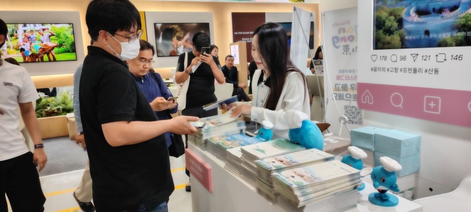 活动期间,青岛旅游代表团积极展示青岛独特的旅游魅力。现场发放了青岛旅游指南、青岛旅游折页、崂山旅游指南、崂山旅游折页等资料2000份以及非遗纪念品50件。作为海上第一名山及道教文化圣地,崂山以其独特山海风光、千年古建筑群和深厚的文化底蕴,吸引了众多韩国游客驻足咨询,成为展会上的焦点。展会现场,崂山风景区通过VR全景体验、高清宣传片、文化互动等方式,向韩国游客生动展现了优美风光。展会上特别推介了“崂山+青岛啤酒博物馆”“崂山+奥帆中心”等精品旅游线路,满足韩国游客“周末游青岛”的短途旅行需求。